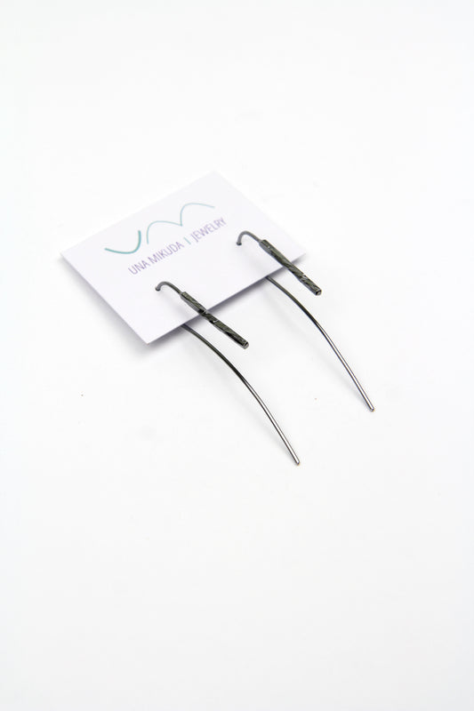 Sleek Line Black Silver Hook Earrings