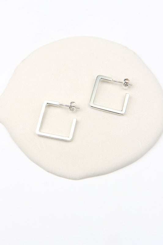 Square Silver Hook Earrings - small