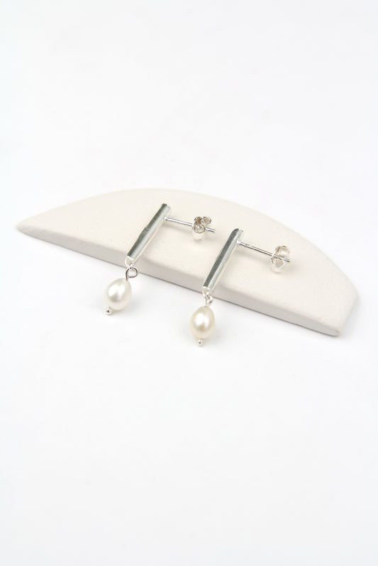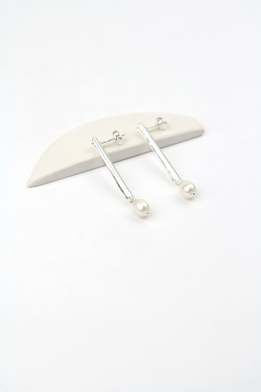 Fine Silver Tube Earrings With Pearl