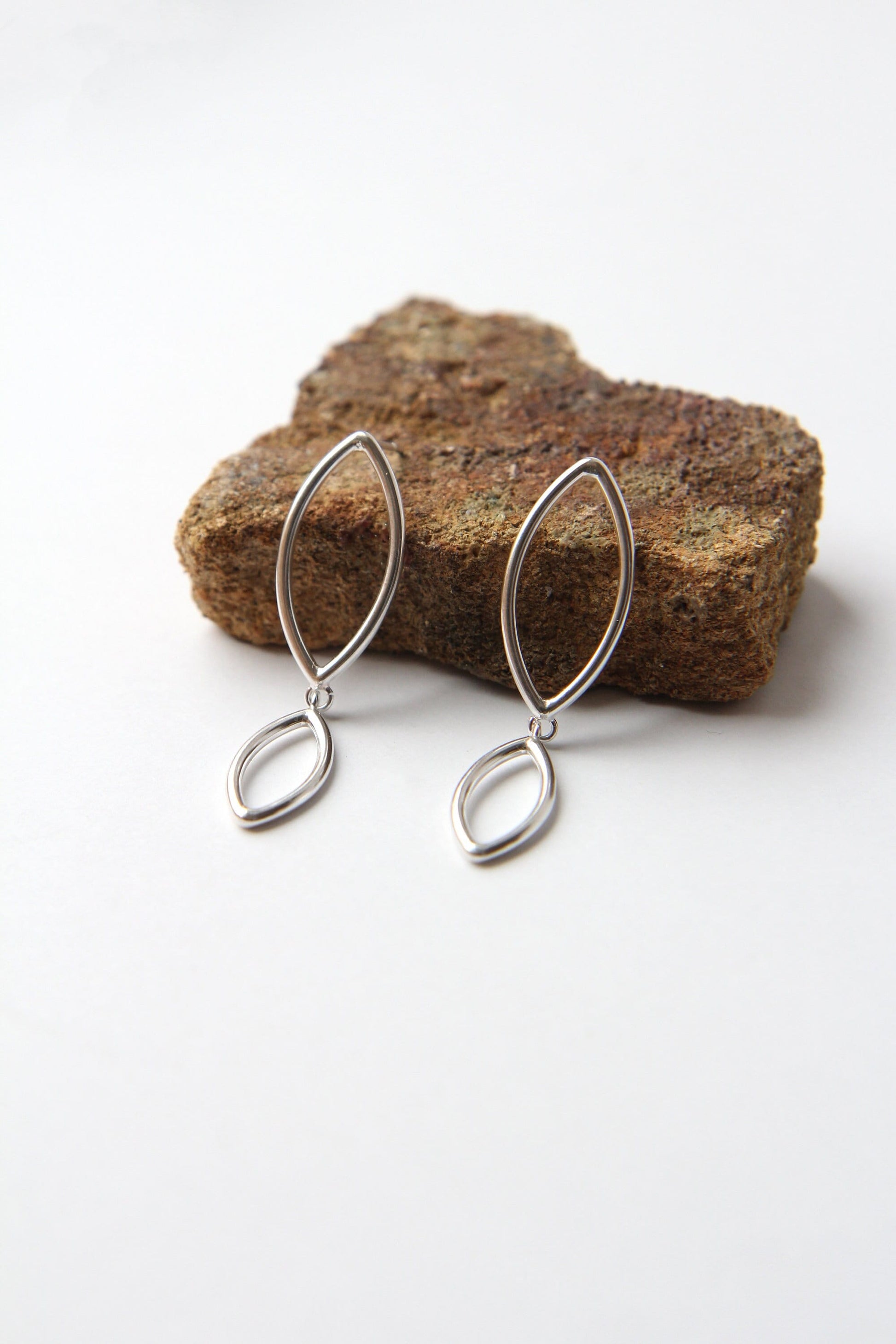 Unique, handmade silver petal form stud dangle earrings. Material - 1,5mm round profile silver wire curved in leaf form and put together in chain. A perfect way to update and freshen up your style and outfit. Perfect for both - everyday and occasional wearing.