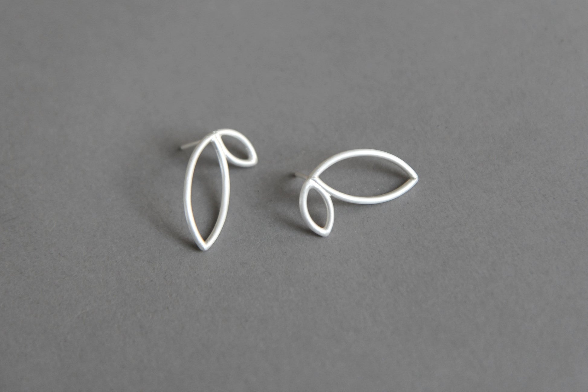 Unique, handmade silver petal form stud earrings. Material - 1,5mm. A perfect way to update and freshen up your style and outfit. Comes in pair of two. Perfect for both - everyday and occasional wearing.