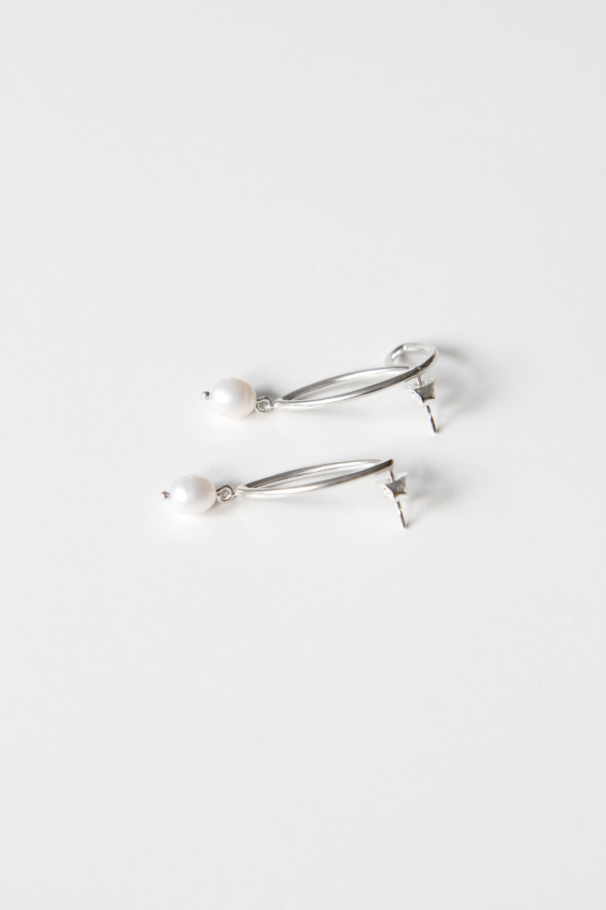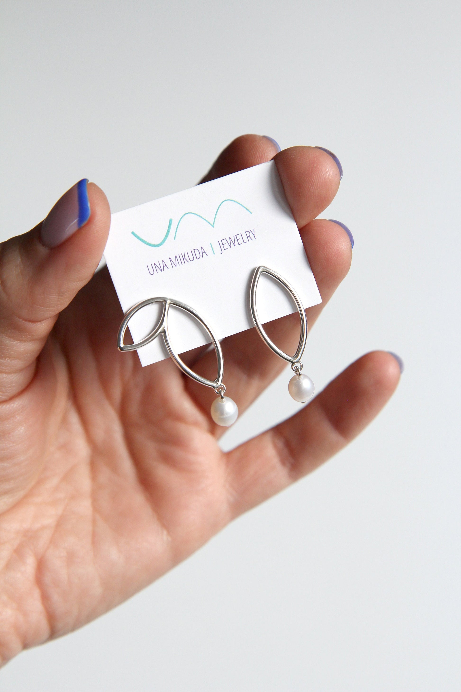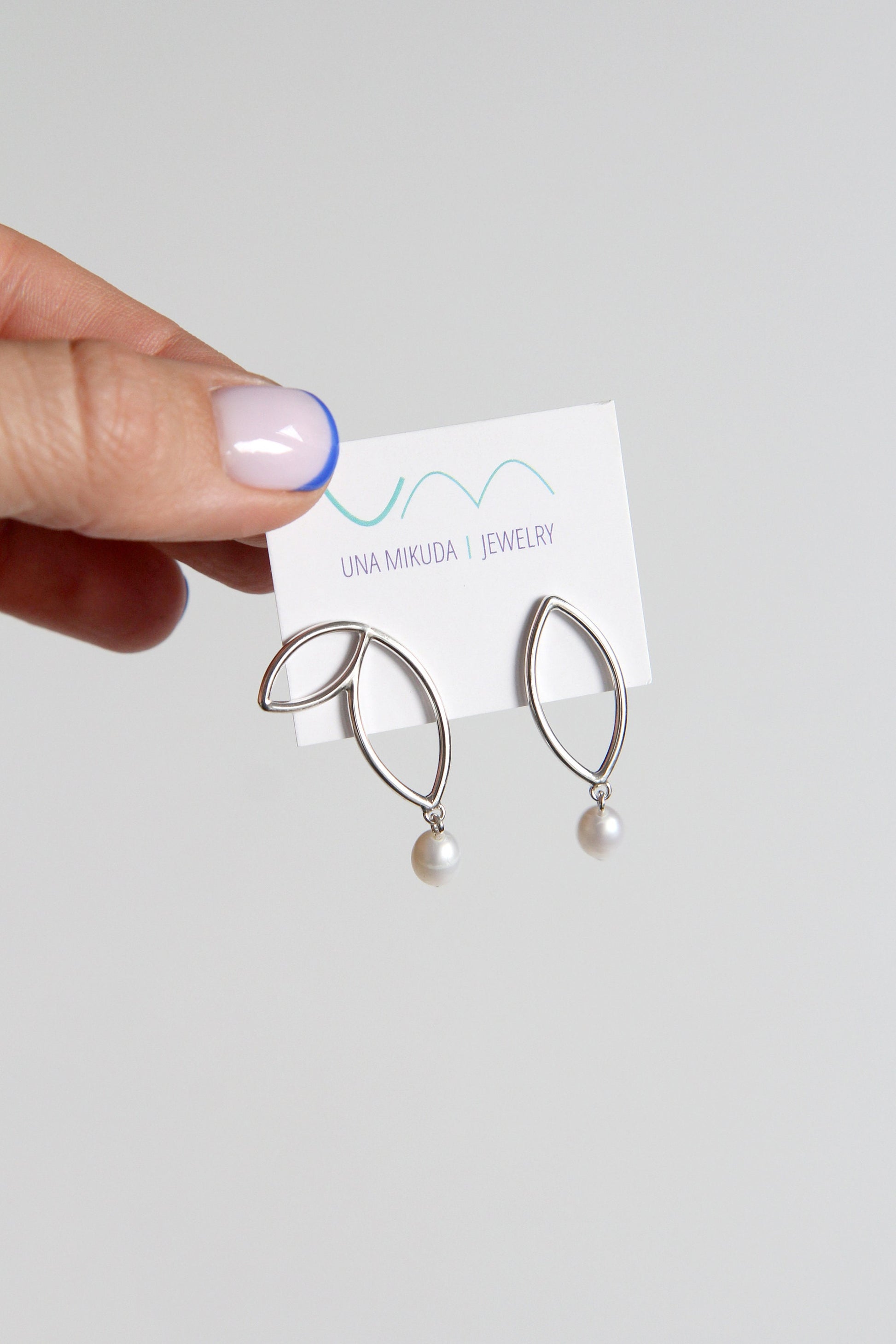 Unique, handmade silver petal form stud earrings with pearl. Material - 1,5mm round profile silver wire combined with dangle pearl. A perfect way to update and freshen up your style and outfit. Perfect for both - everyday and occasional wearing.