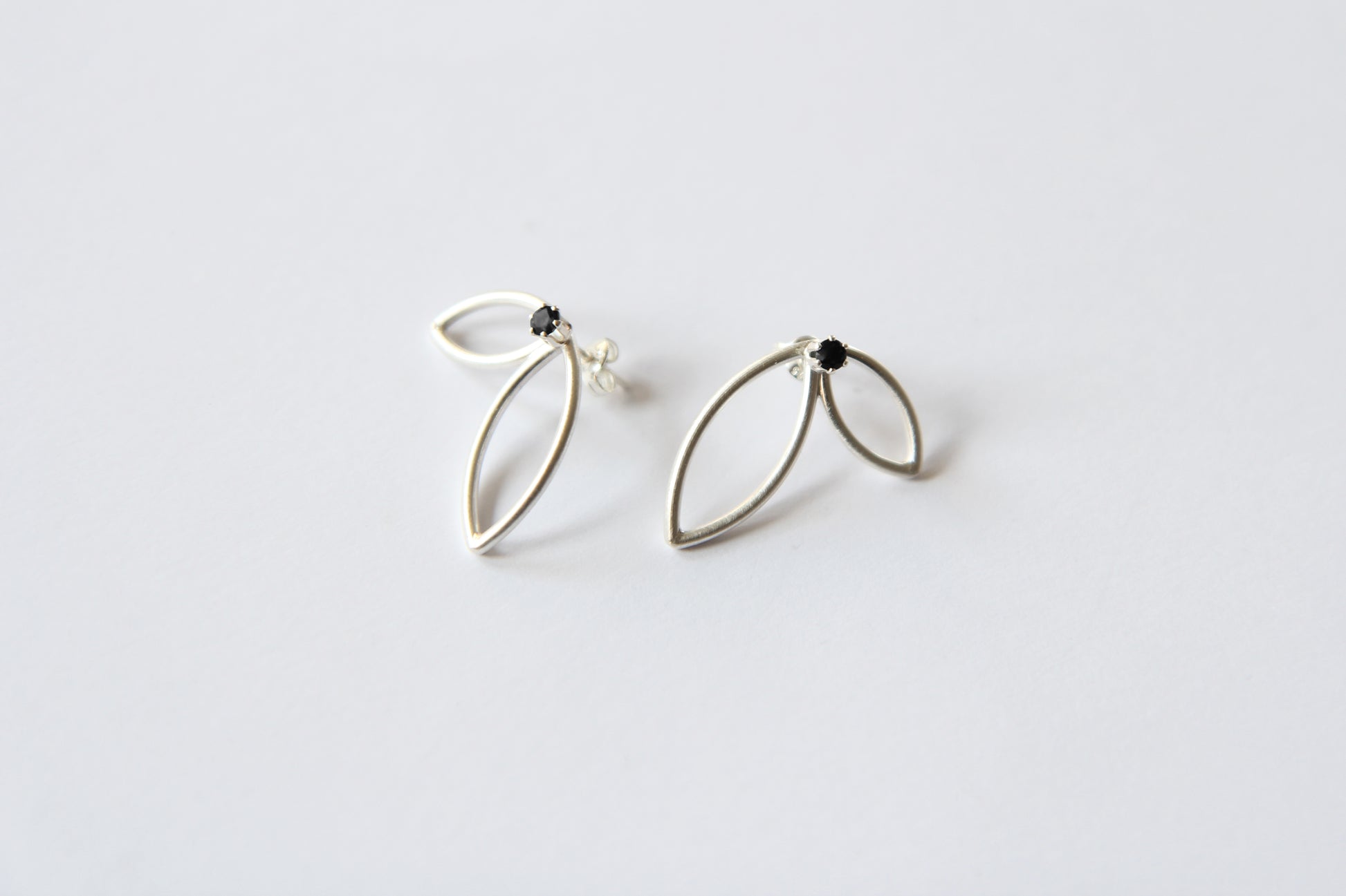 Unique, handmade silver petal form stud earrings with green opal. Material - 1,5mm silver wire. A perfect way to update and freshen up your style and outfit. Perfect for both - everyday and occasional wearing.