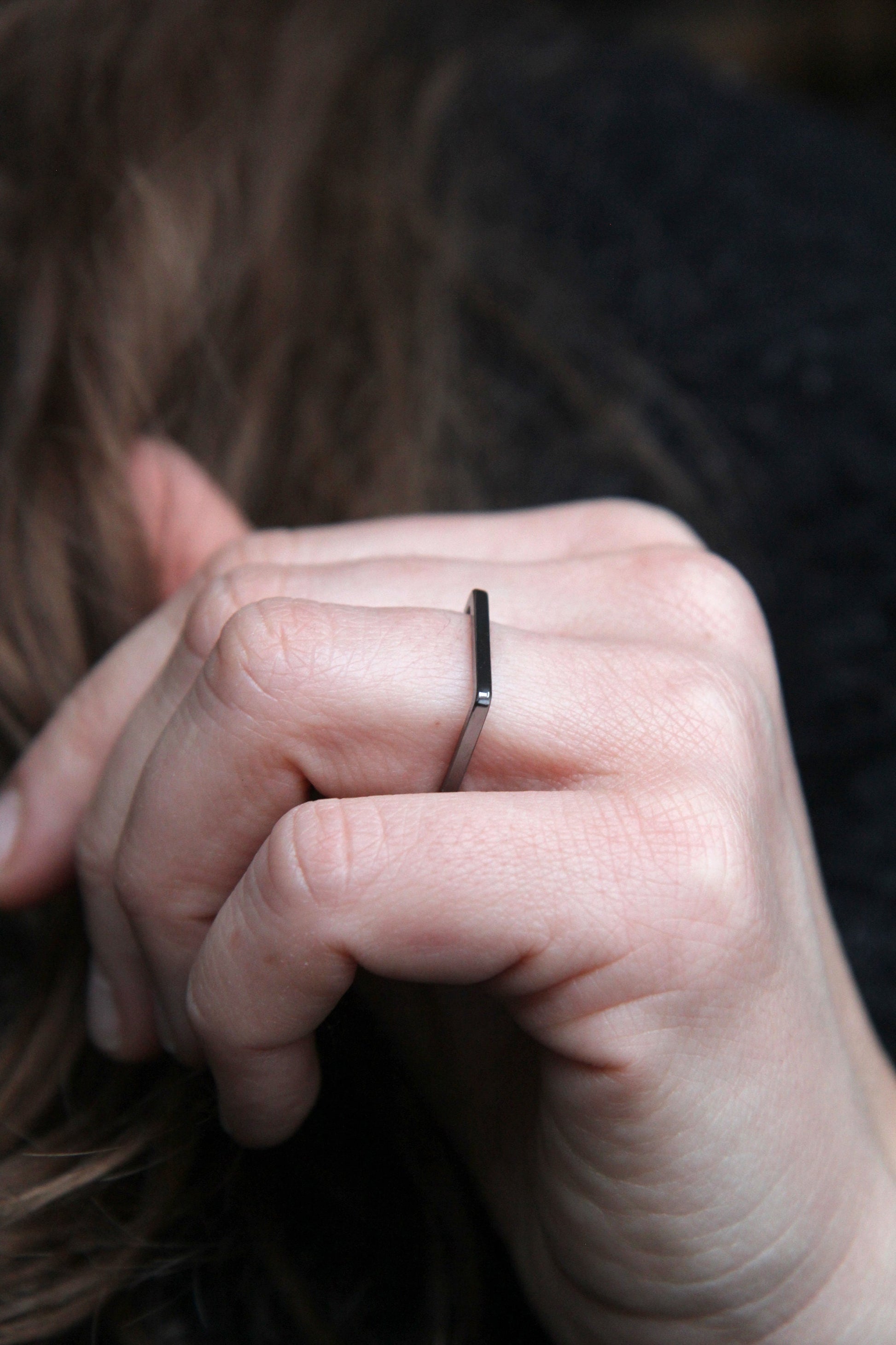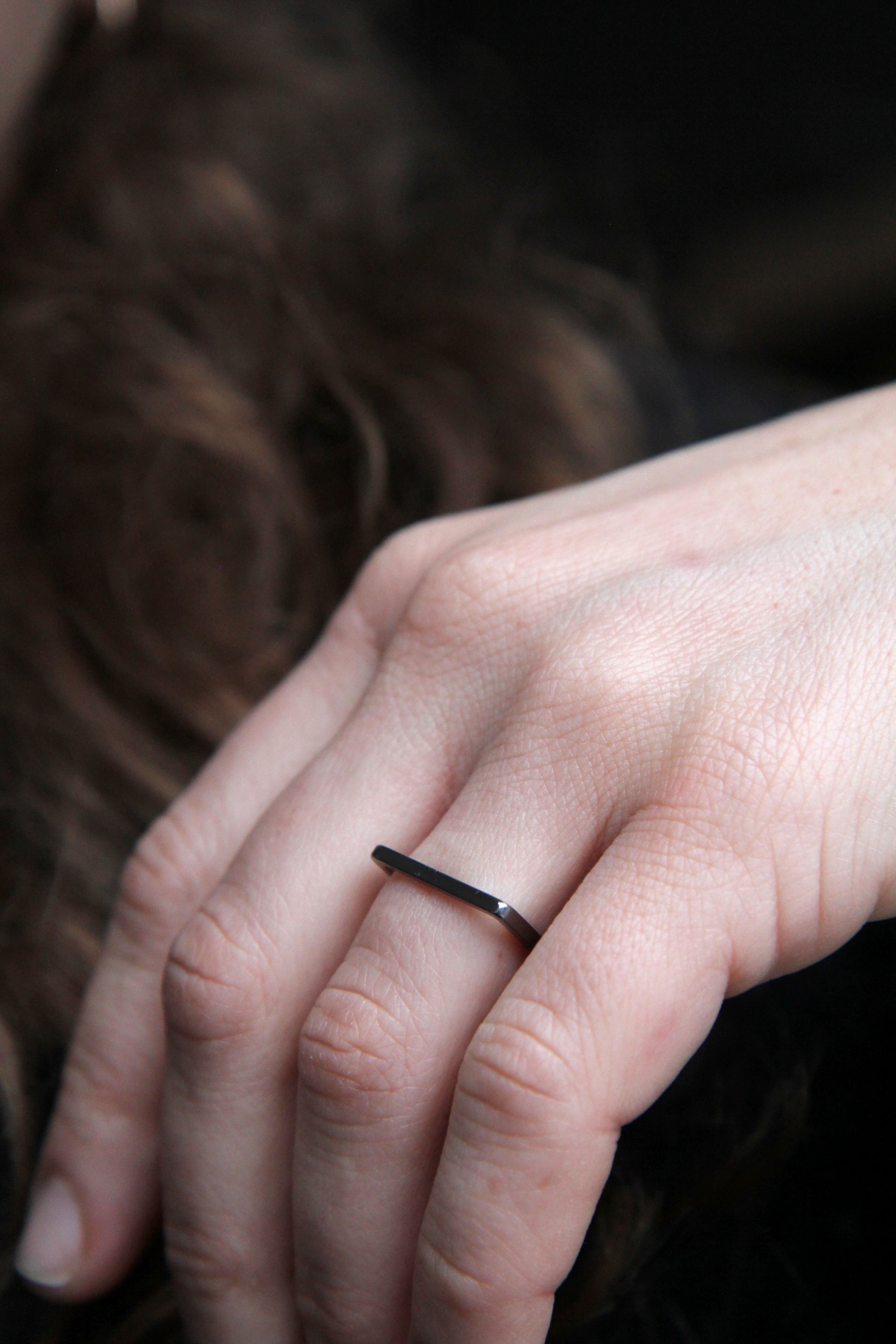 Fine and delicate sterling silver geometric stack ring with black rhodium plating. Simple modern everyday ring handmade from recycled silver. A perfect way to update and freshen up your style and outfit. Perfect for both - everyday and occasional wearing. You can wear it only one or combine together more and stack them one on other.