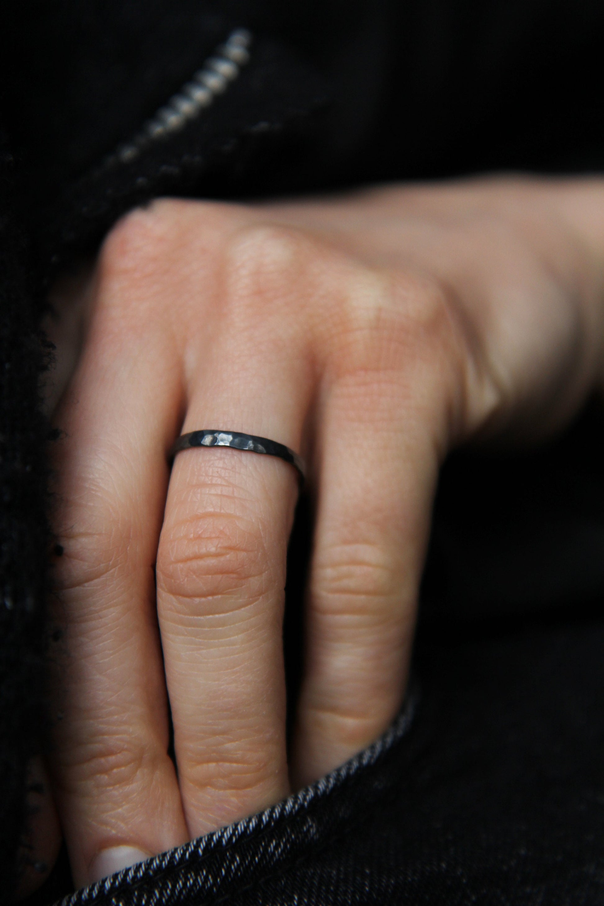 Unique, handmade simple and fine stackable ring with hammered surface. Perfect for everyday wearing. Could be worn only one or two, three together. A perfect way to update and freshen up your style and outfit. Variations available - silver, black rhodium plating or gold-plated silver.