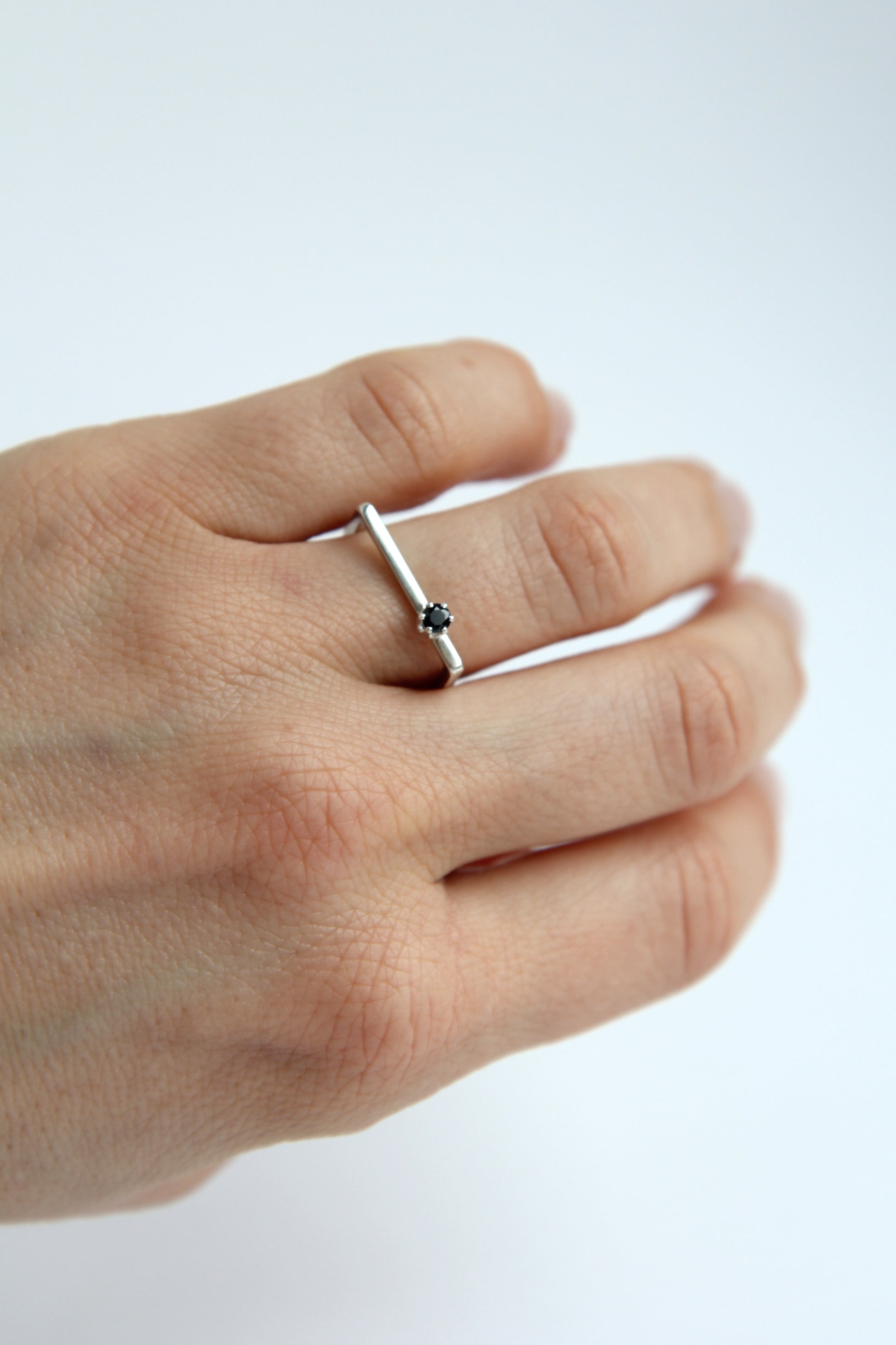 Fine and delicate sterling silver geometric stack ring with zircon. Simple modern everyday ring handmade from recycled silver with black rhodium plating. A perfect way to update and freshen up your style and outfit. Perfect for both - everyday and occasional wearing. You can wear it only one or combine together more and stack them one on other.