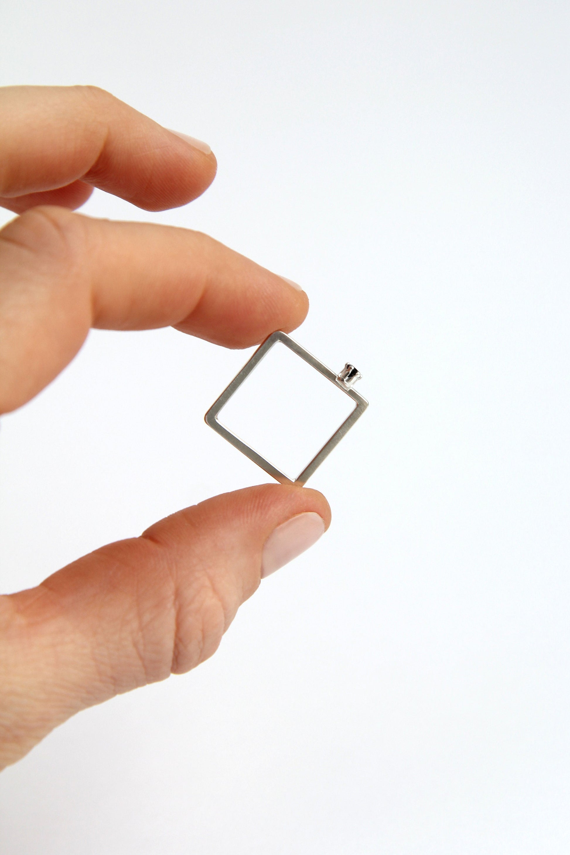 Fine Silver Square Ring with Zircon