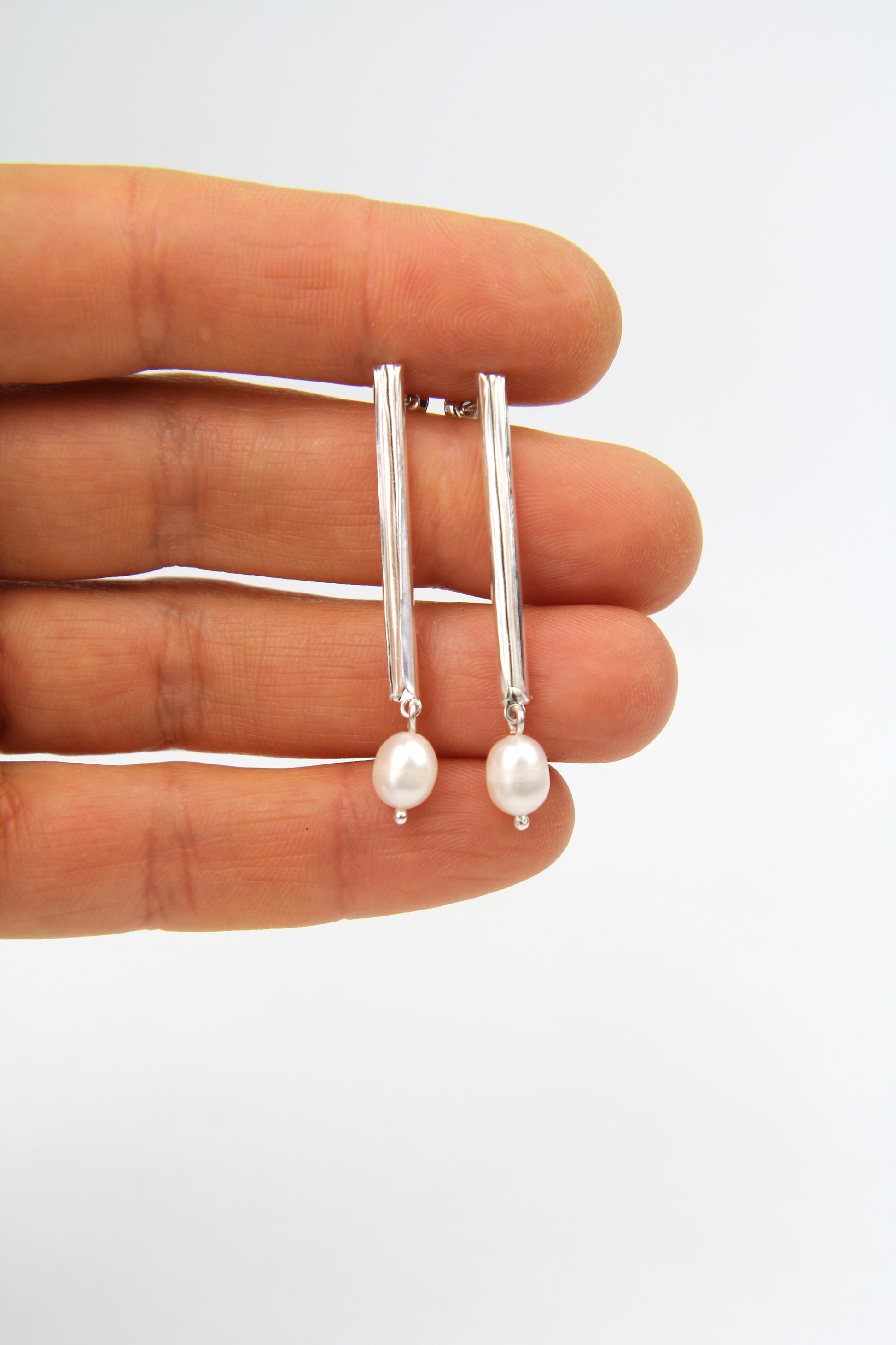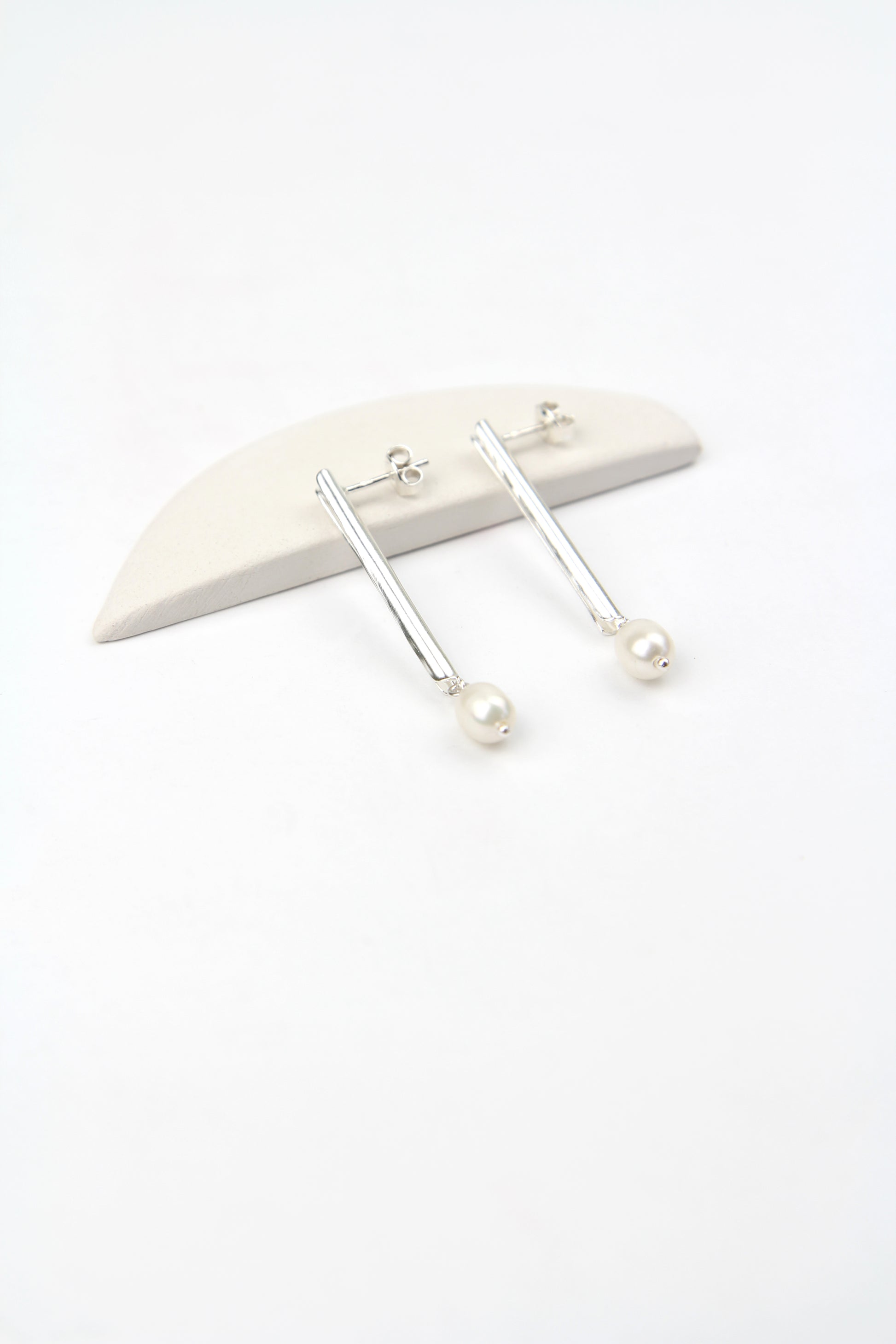 Elegant and modern, these earrings combine minimalist design with a timeless touch. Crafted from high-quality sterling silver, the sleek tube shape is complemented by a delicate pearl, adding subtle sophistication. Lightweight and versatile, these earrings are perfect for both everyday wear and special occasions.