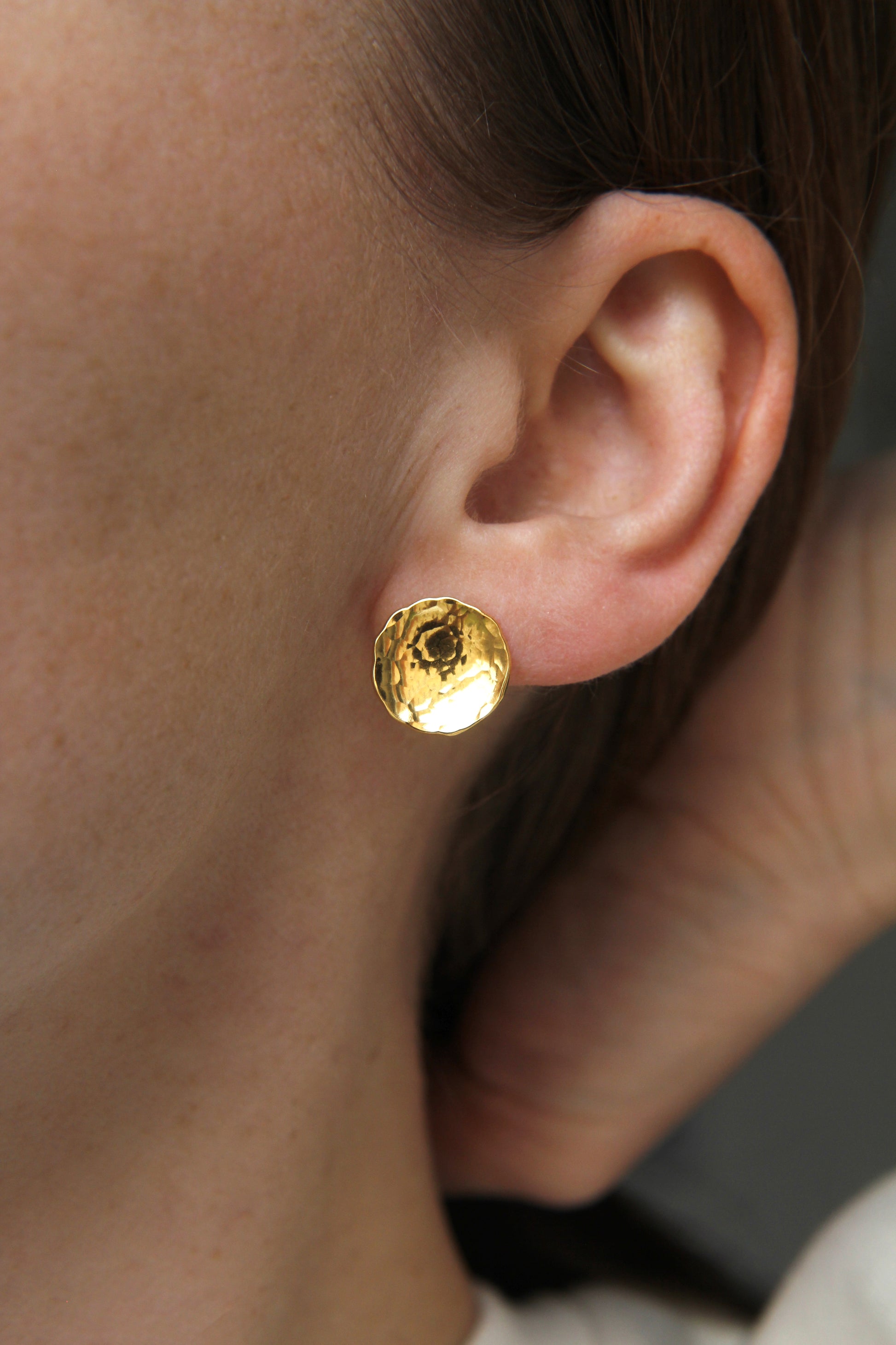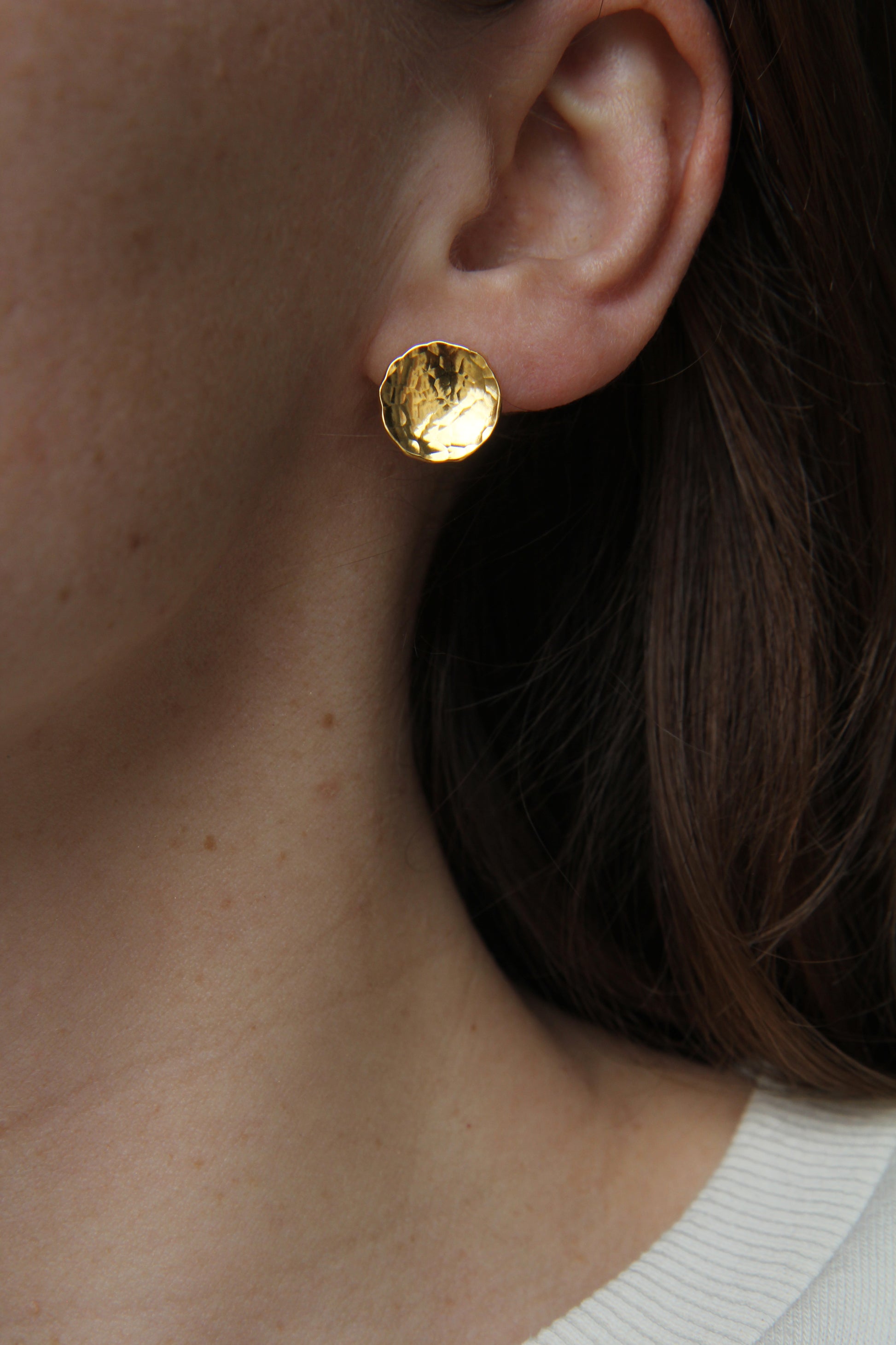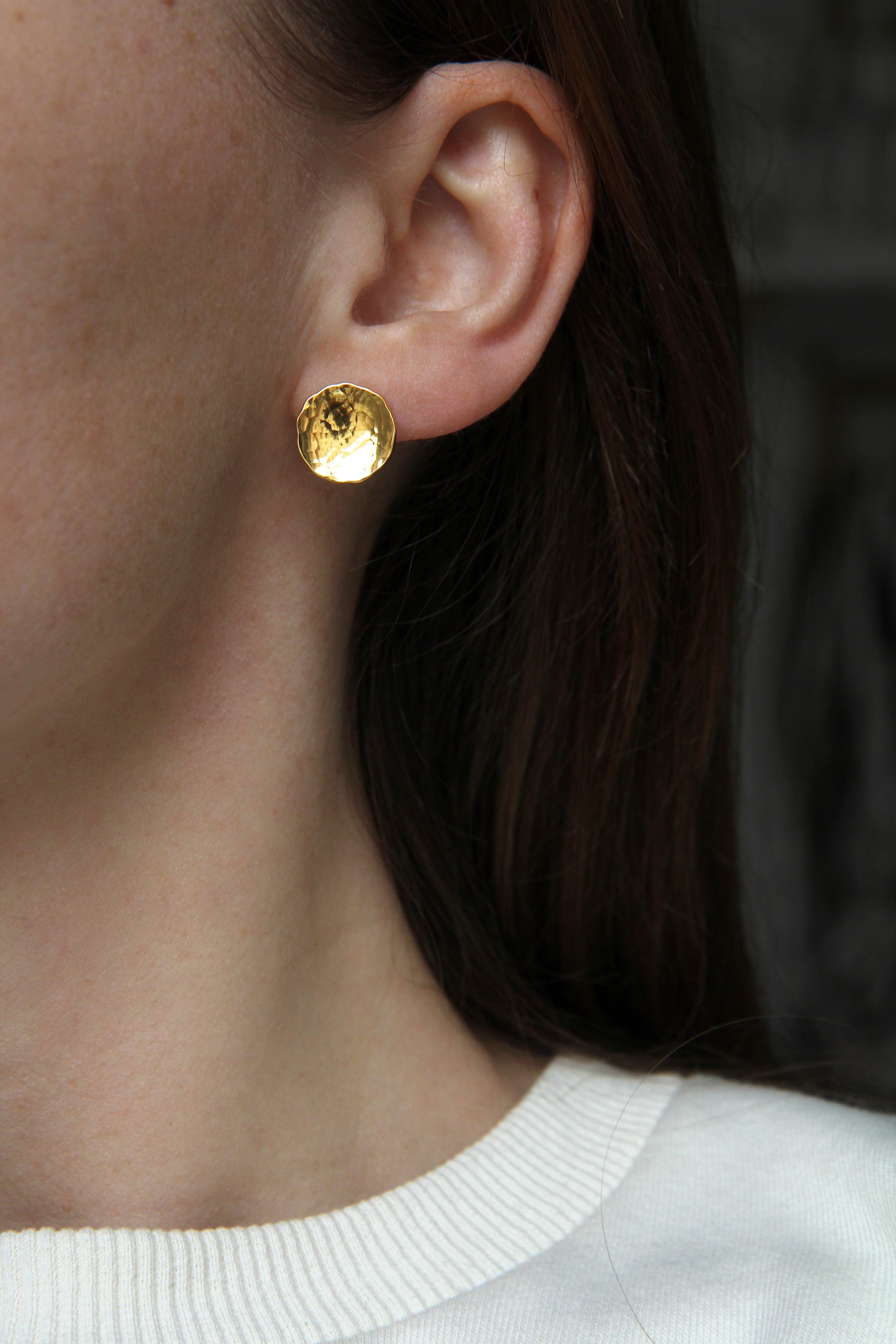 Unique, handmade and minimalistic hammered gold-plated silver circle earrings. Made of 0,6mm thin silver plate. A perfect way to update and freshen up your style and outfit.