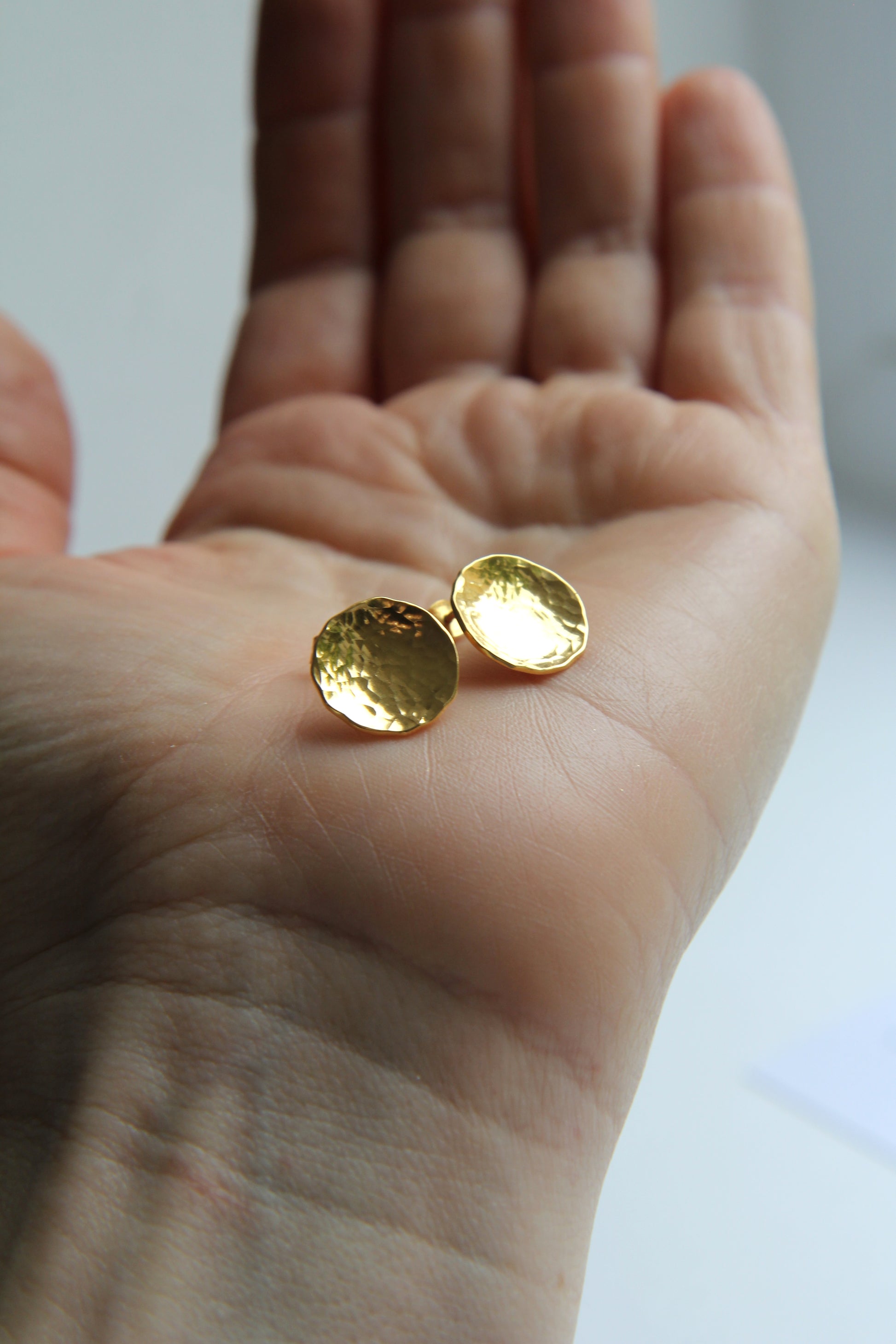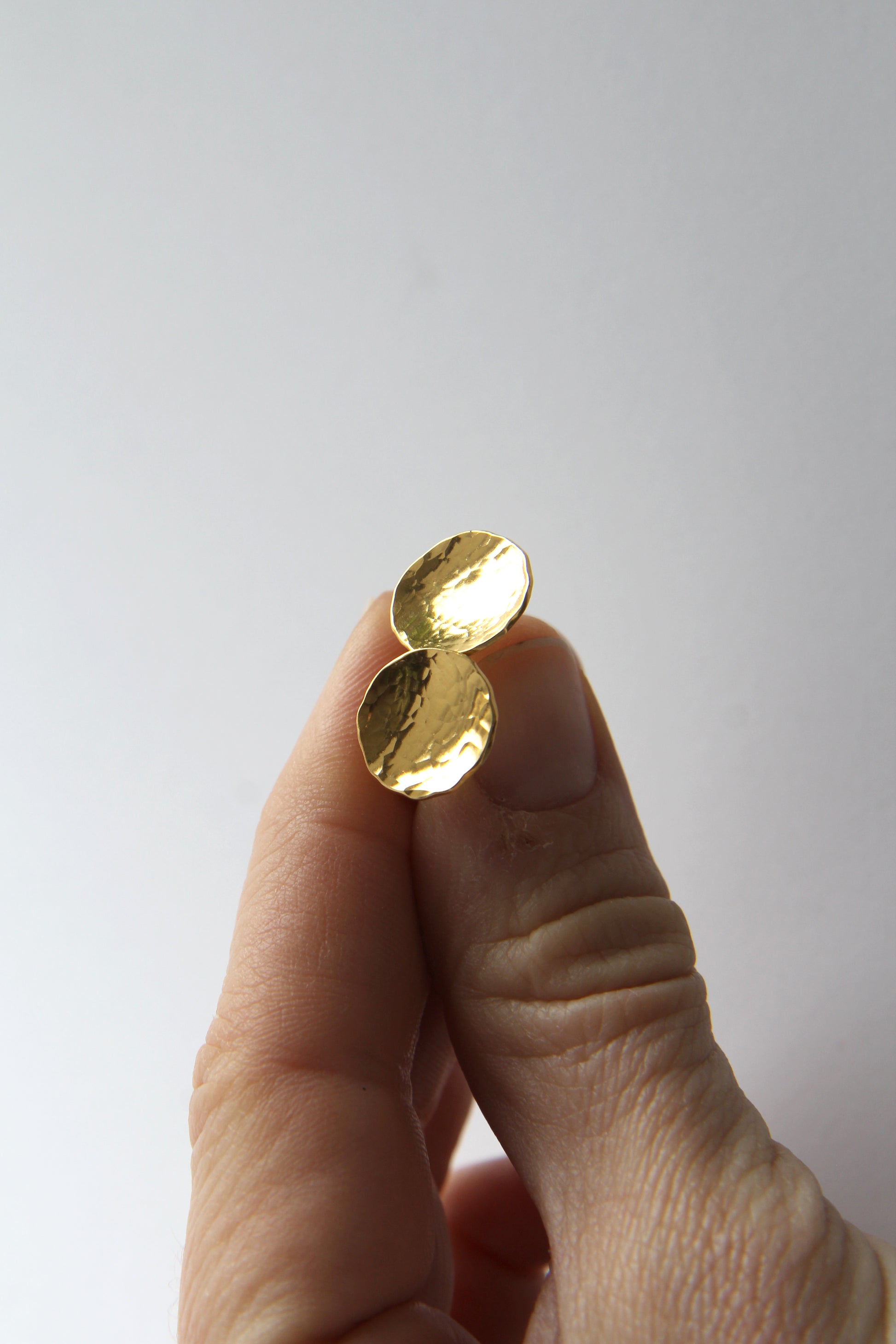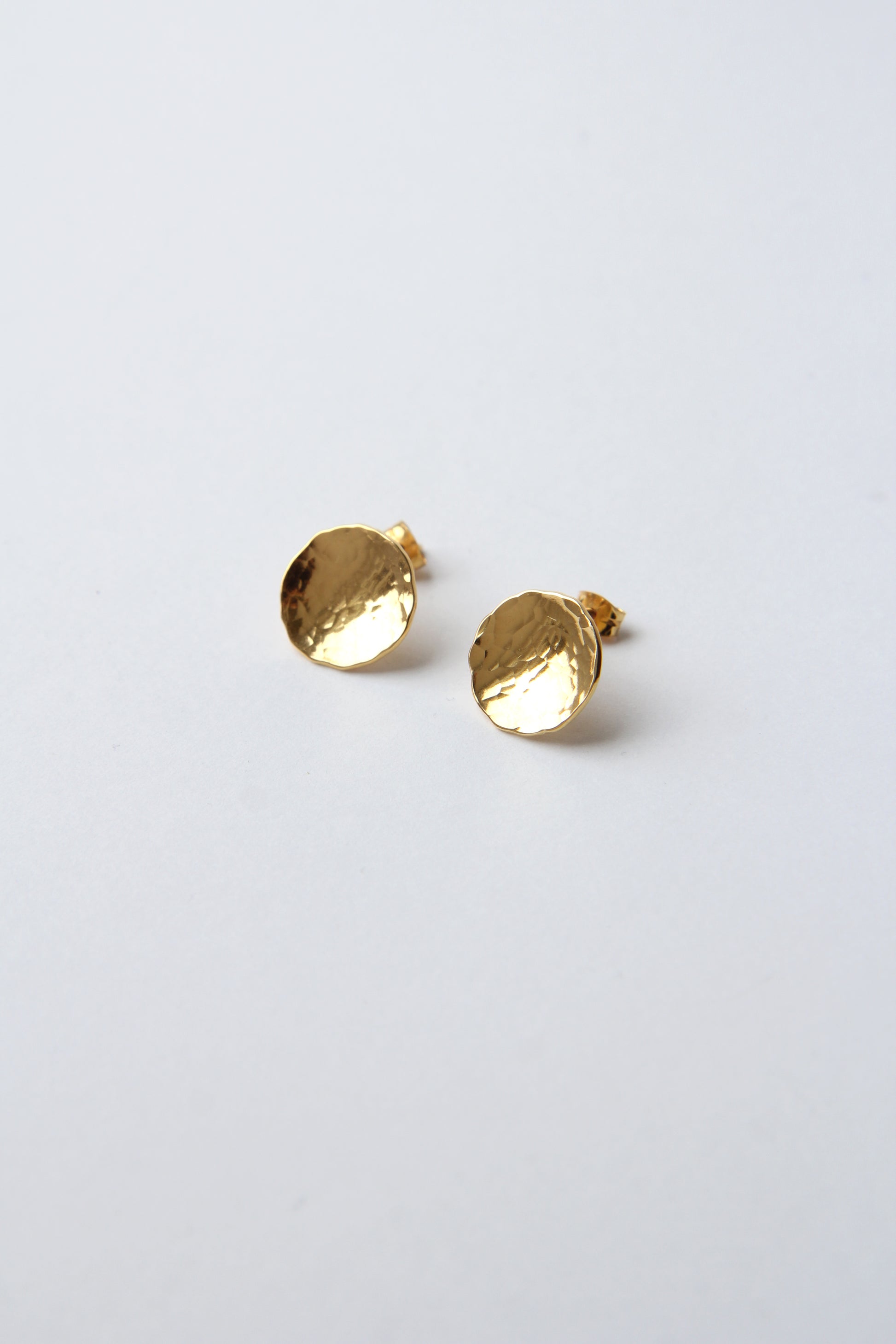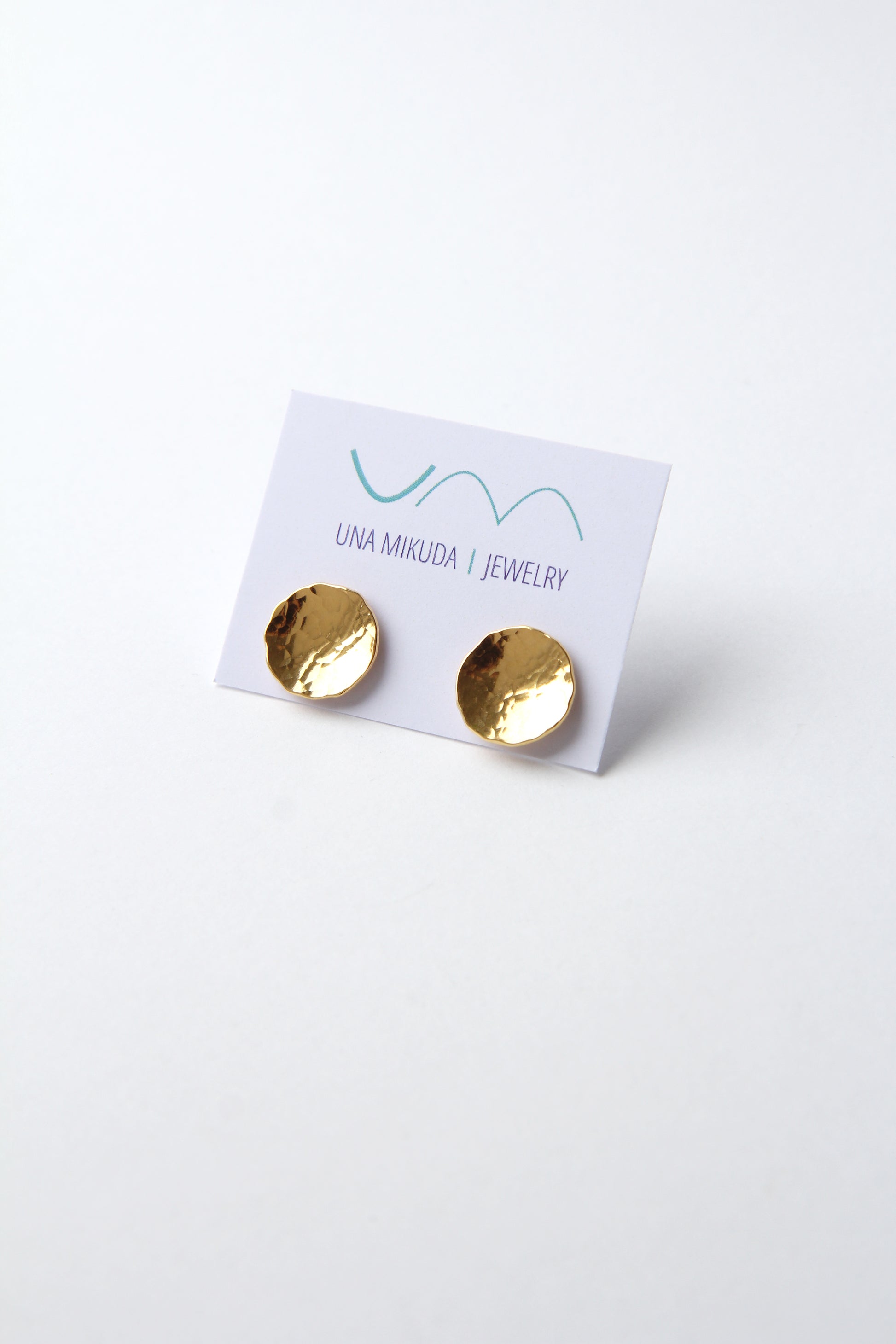 Unique, handmade and minimalistic hammered gold-plated silver circle earrings. Made of 0,6mm thin silver plate. A perfect way to update and freshen up your style and outfit.