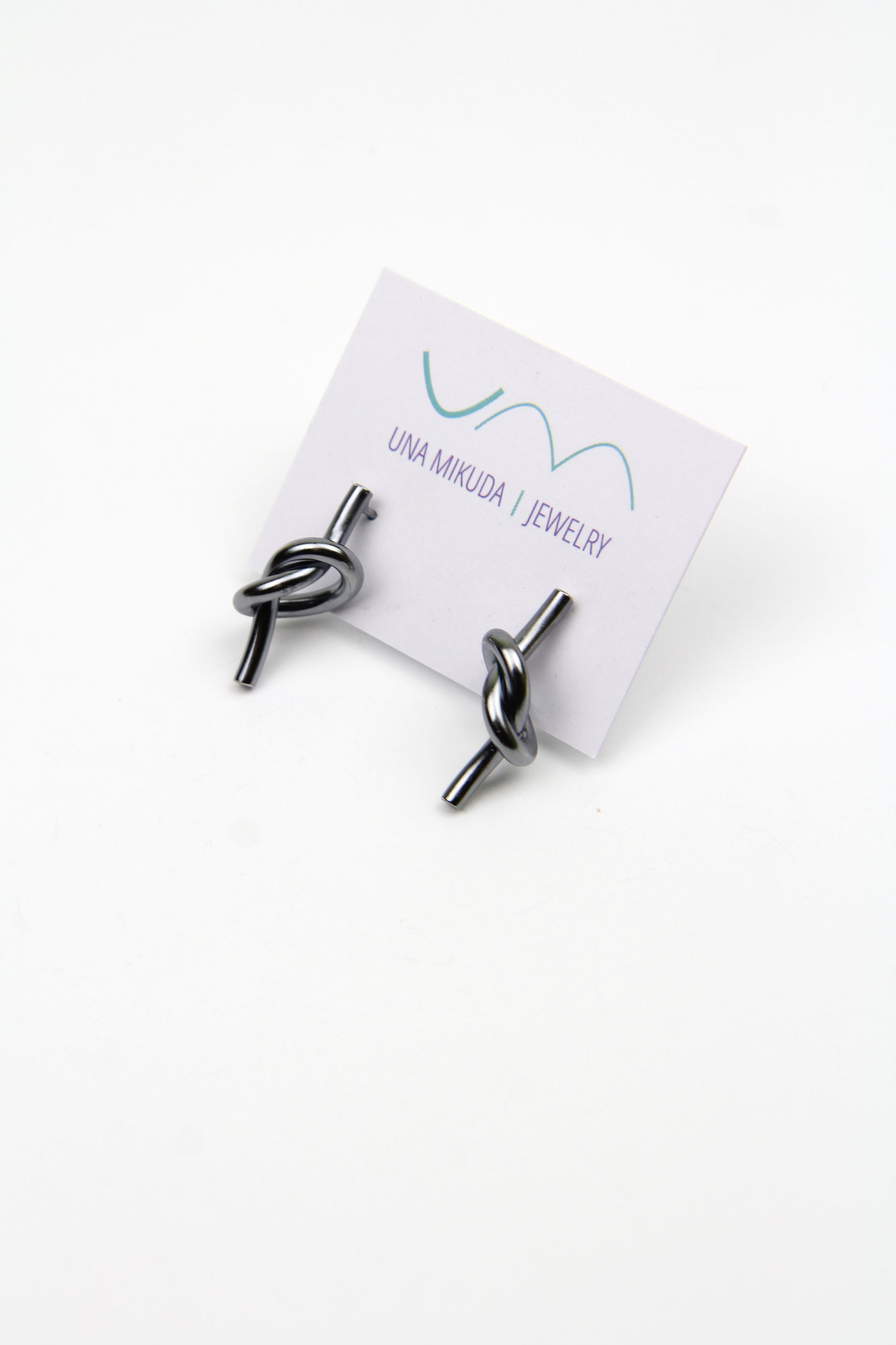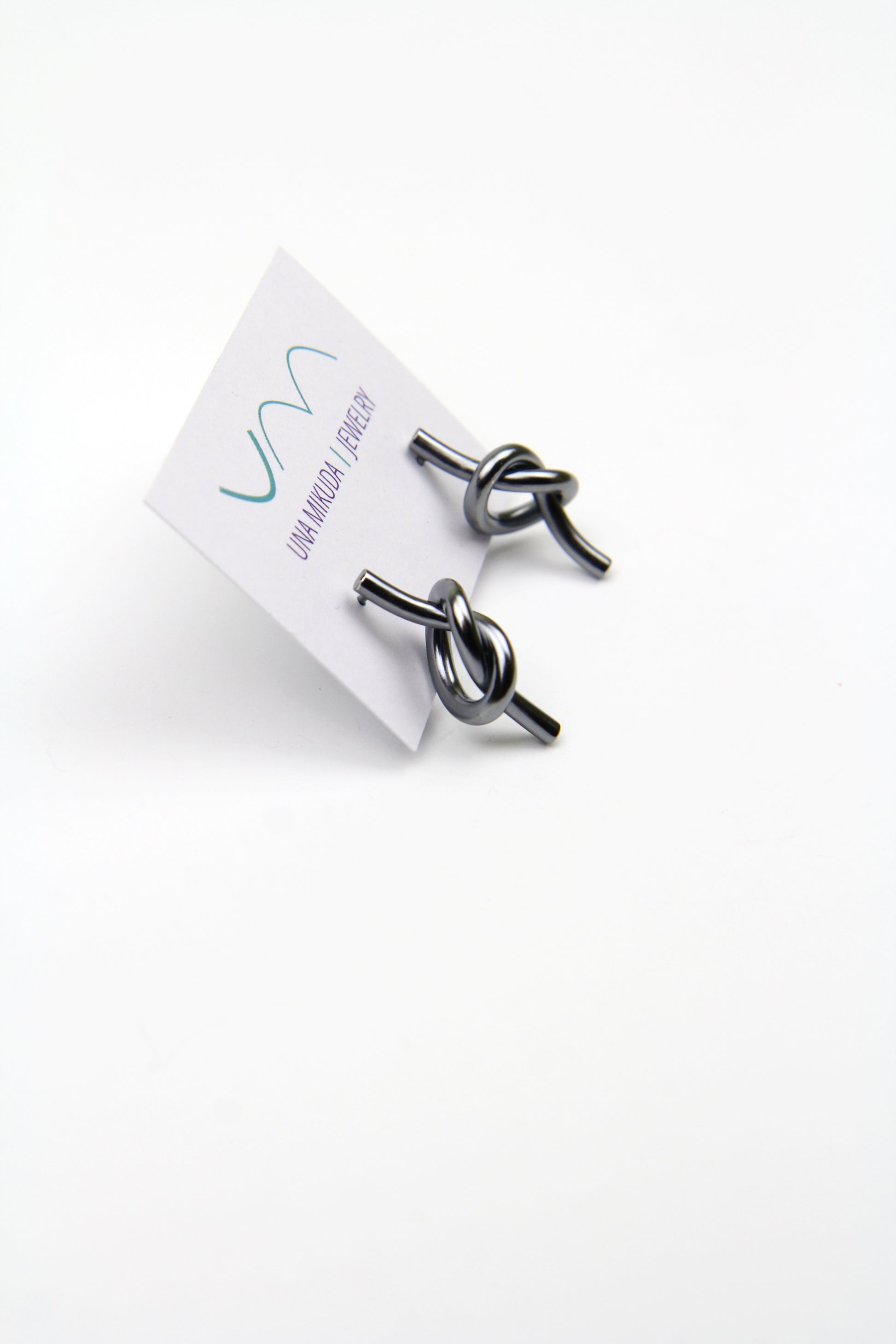 I believe that jewelry could be a lucky talisman, so these silver knot earrings will bring you a good luck energy. Black silver knots curved by hand have such a simple but beautifully dynamic form. More simple from front, but when seen from side, gets a new characteristics. Material - 2,4 mm round profile silver wire with matt surface. A perfect way to update and freshen up your style and outfit. Perfect for both - everyday and occasional wearing.