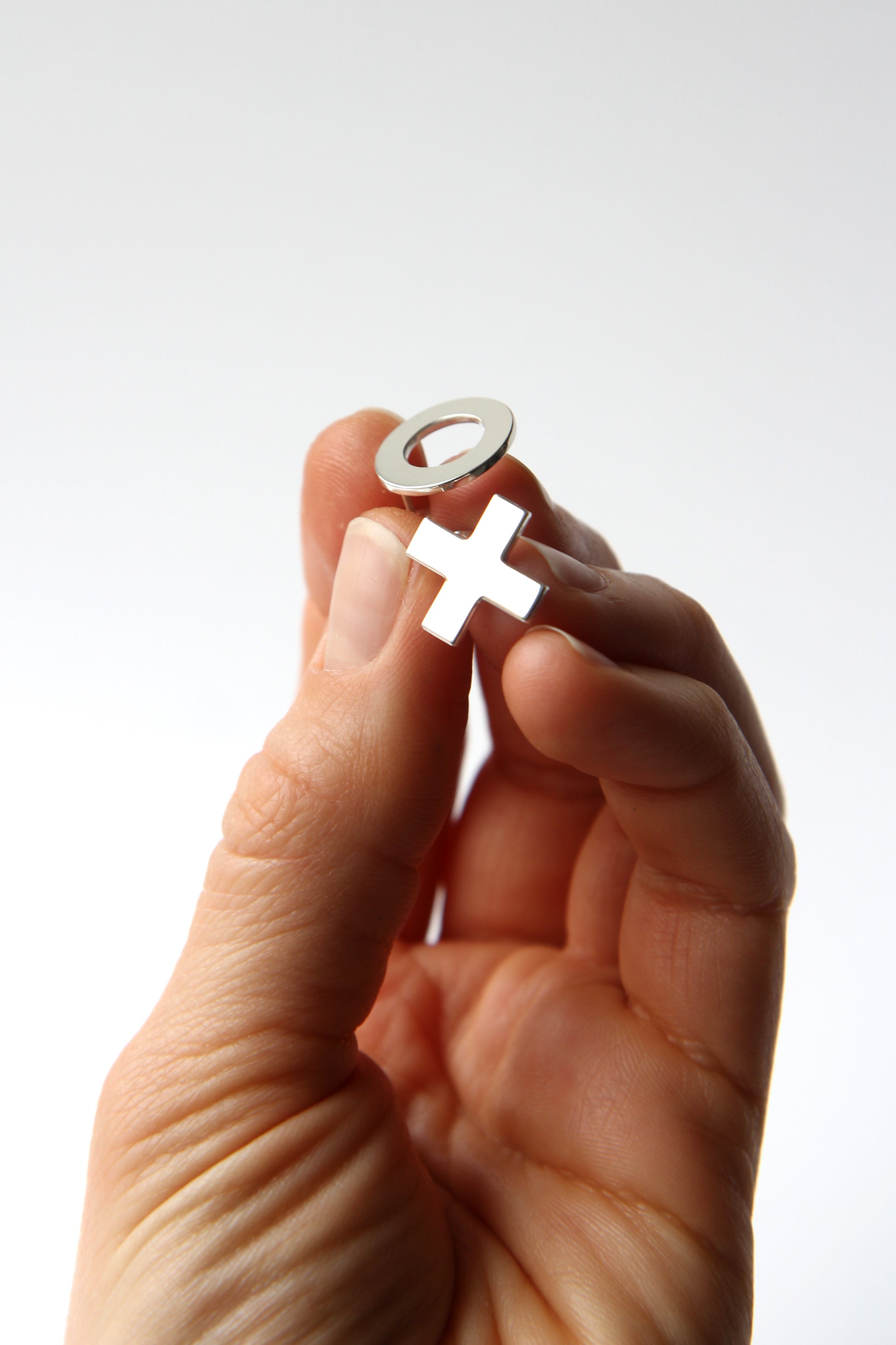 The combination of two iconic shapes into a clean, contemporary design. The cross symbolizes strength and structure, while the circle represents unity and continuity. Together, they create a subtle yet expressive statement.