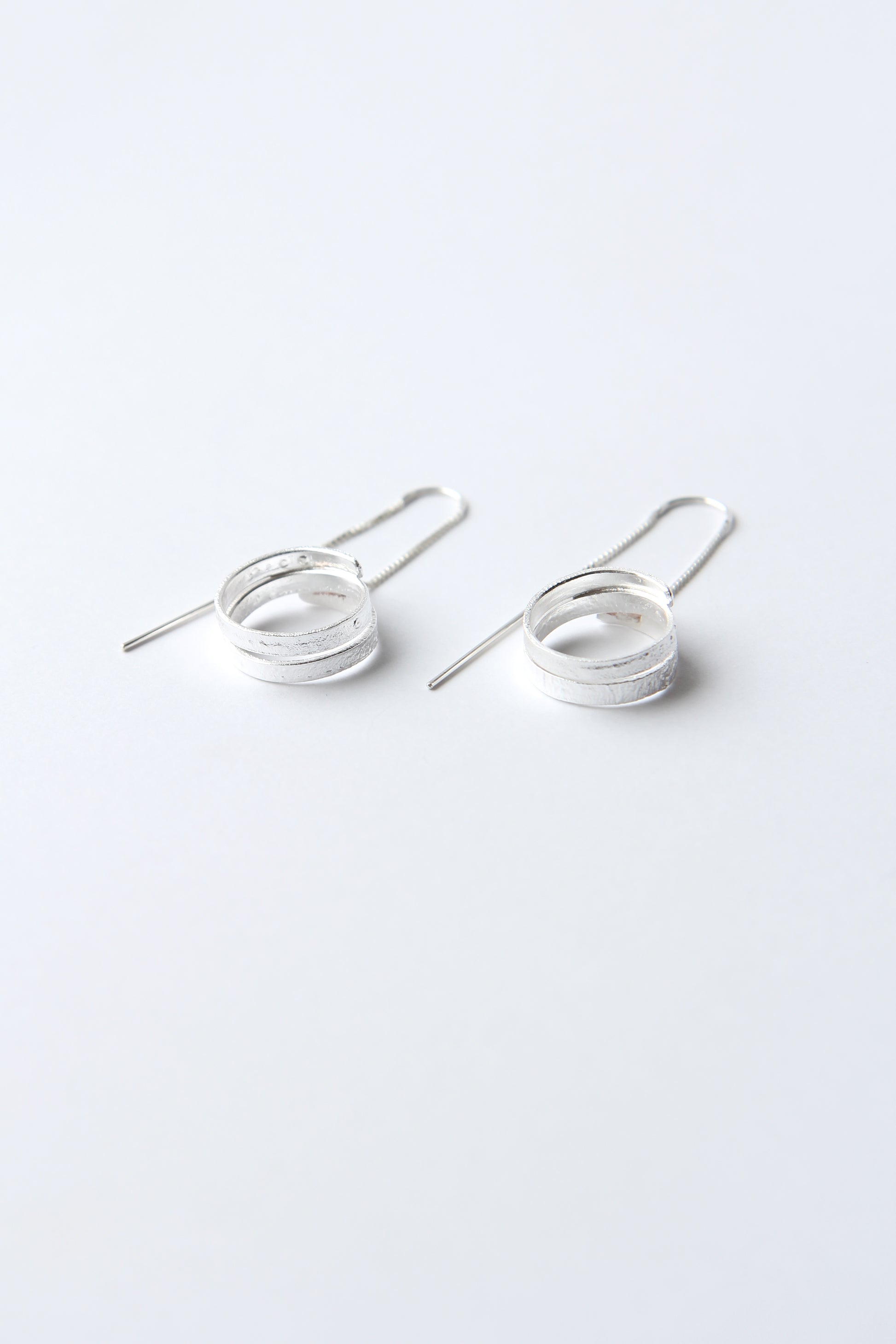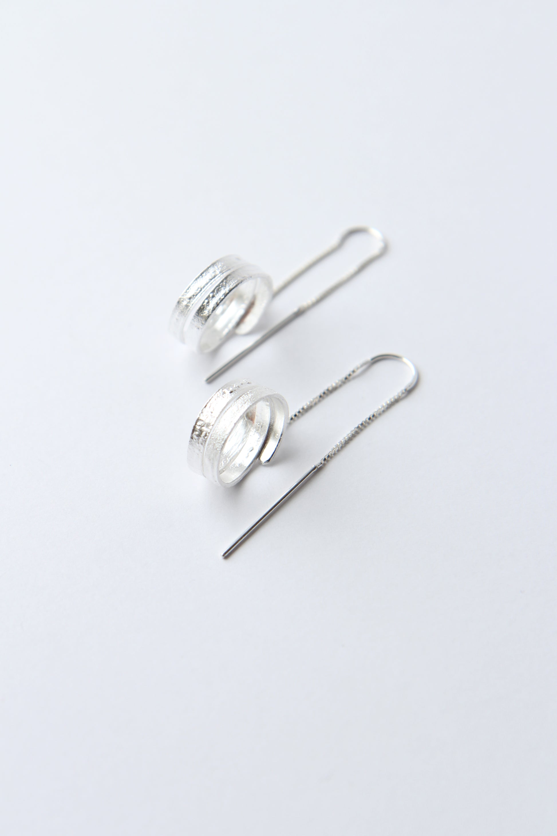 These one-of-a-kind, handmade earrings feature a beautiful, melted texture crafted from recycled silver, making them eco-friendly and unique. The lightweight design gently curves, creating an elegant silver ribbon effect that wraps gracefully for a sleek, modern look. Perfect for those who appreciate artisanal craftsmanship and sustainable accessories.