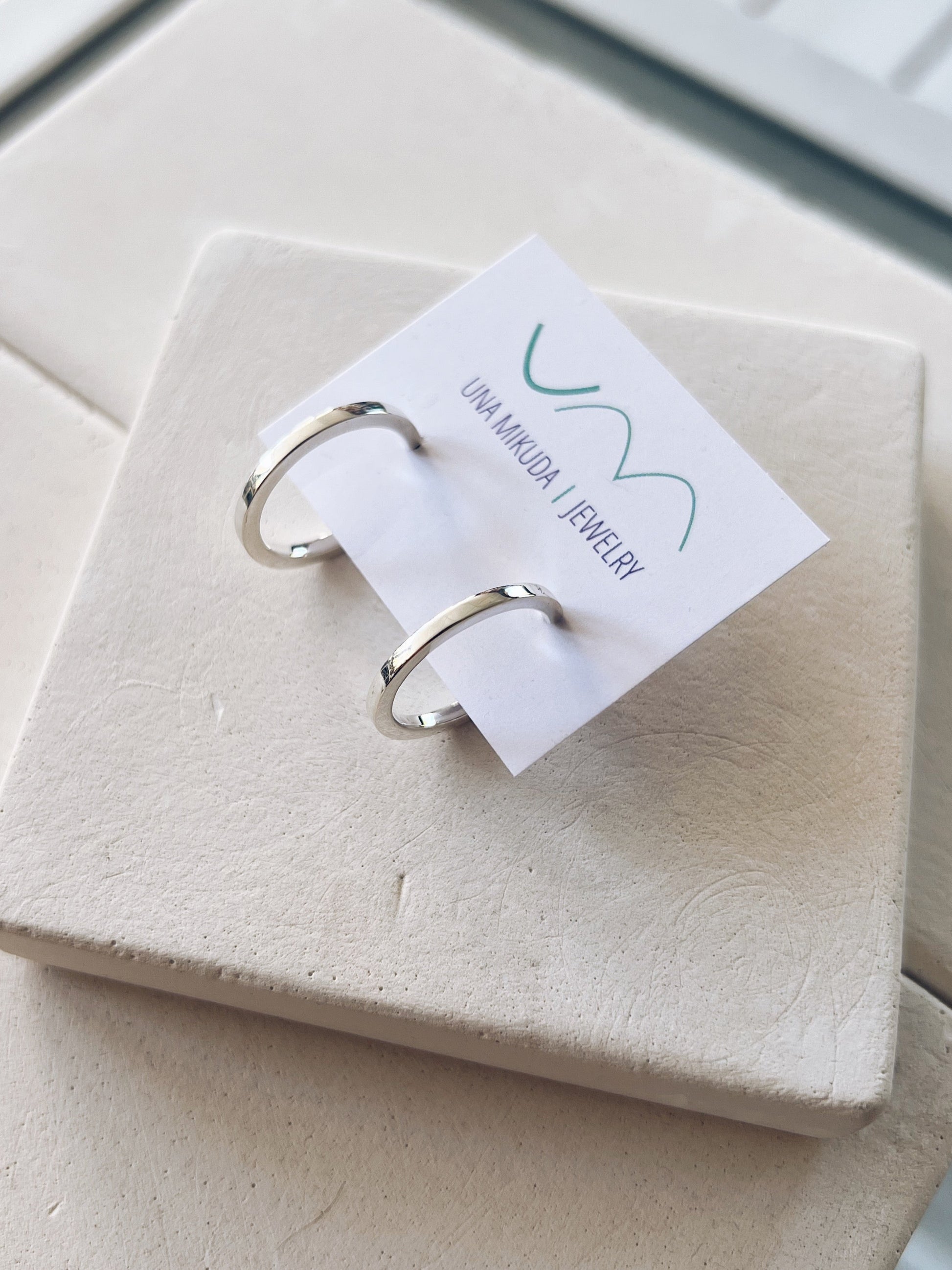 Timeless and elegant, these handmade sterling silver hoops offer a sleek, minimalist design with a personal touch. Lightweight and polished to a radiant shine, they add a subtle touch of style to any outfit.